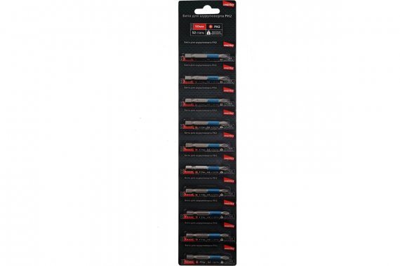 Изготовлены из стали тип S2. Благодаря этой стали, биты обладают повышенной стойкостью к повреждениям, и наделены большим сроком службы. На битах есть насечка для защелкивания в патронах.
