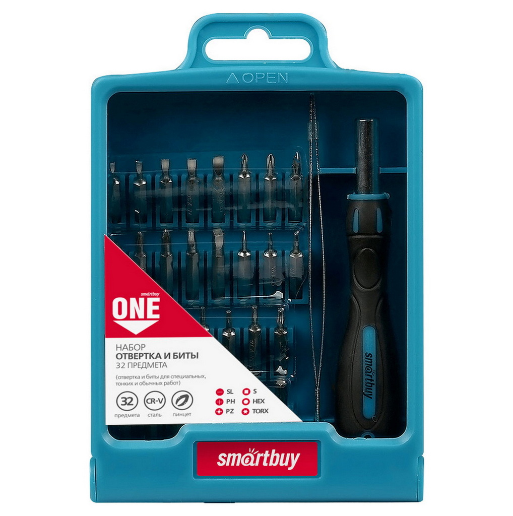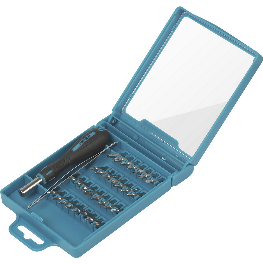 Отвертка с набором бит Smartbuy 32 предмета, отвертка, 30 бит, пинцет, CR-V SBT-SCBS-32P1 представляет собой широкий ассортимент бит специализированных размеров, которые используются для ремонта электроники, цифровой техники, различной бытовой техники, мебели и других работ. Инструмент выполнен из качественной хромованадиевой стали, что обеспечивает прочность и длительный срок службы. Инструмент поставляется в удобном пластиковом кейсе для рационального хранения и транспортировки.