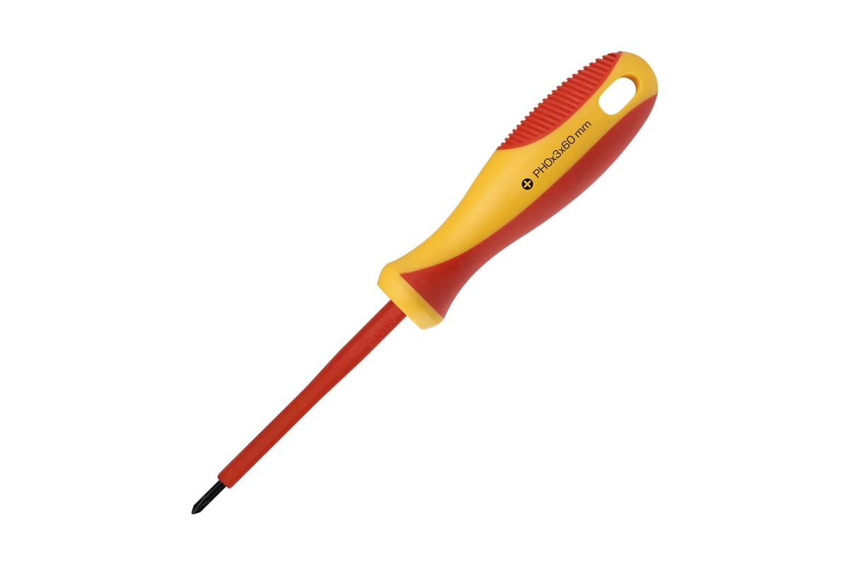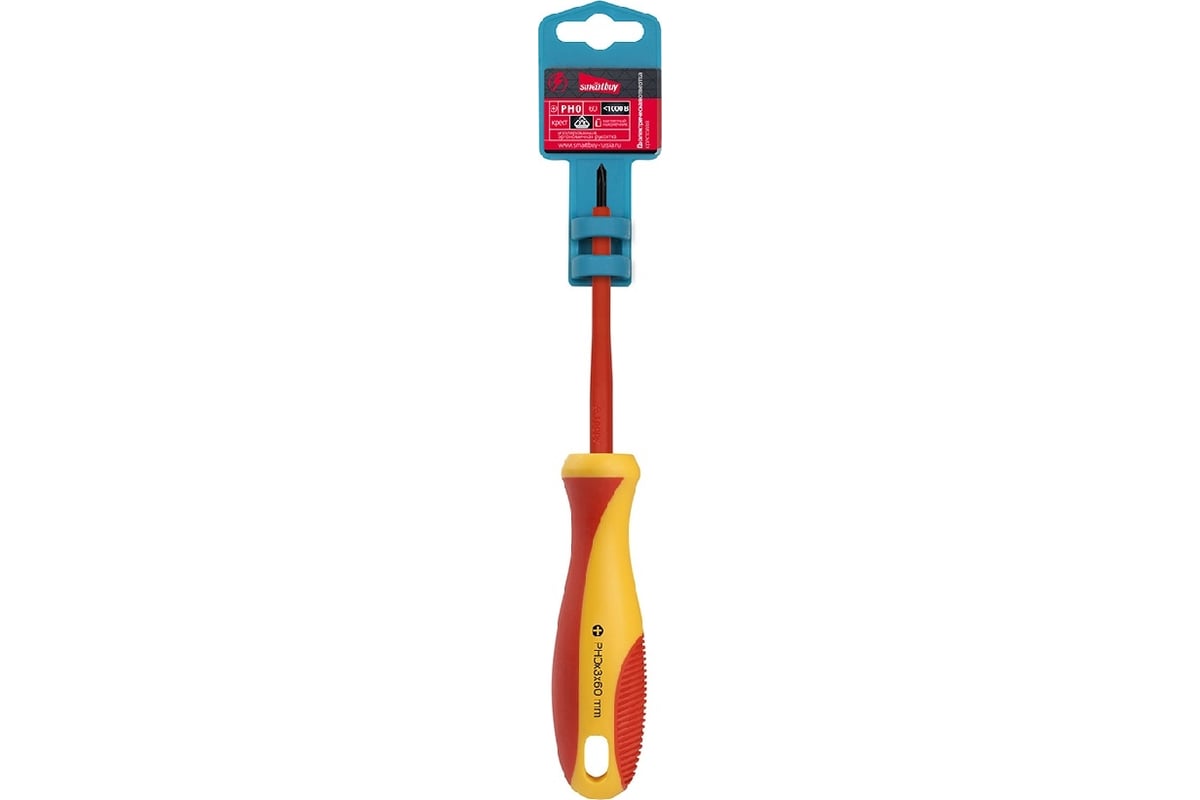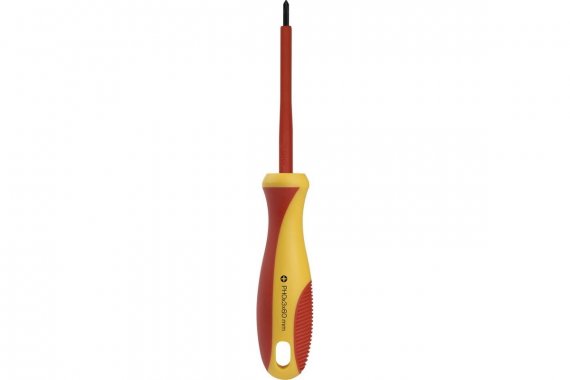 Диэлектрическая крестовая отвертка Smartbuy PH0x60, до 1000 В, VDE SBT-SCI-PH0x60P1 используется для работ с крепежом при различных электромонтажных и ремонтных работах. Отвертка позволяет проводить работу с проводниками, в которых по той или иной причине нельзя отключить питание, например, отрегулировать затяжку винтов входной группы автоматического выключателя, или подключить патрон лампы к включенному участку цепи. Наконечник отвертки выполнен из качественной стали с твердостью свыше 51 единиц по шкале Роквелла. Это обеспечивает высокую прочность и долговечность. Отвертка может выдерживать напряжение до 1000 В.
