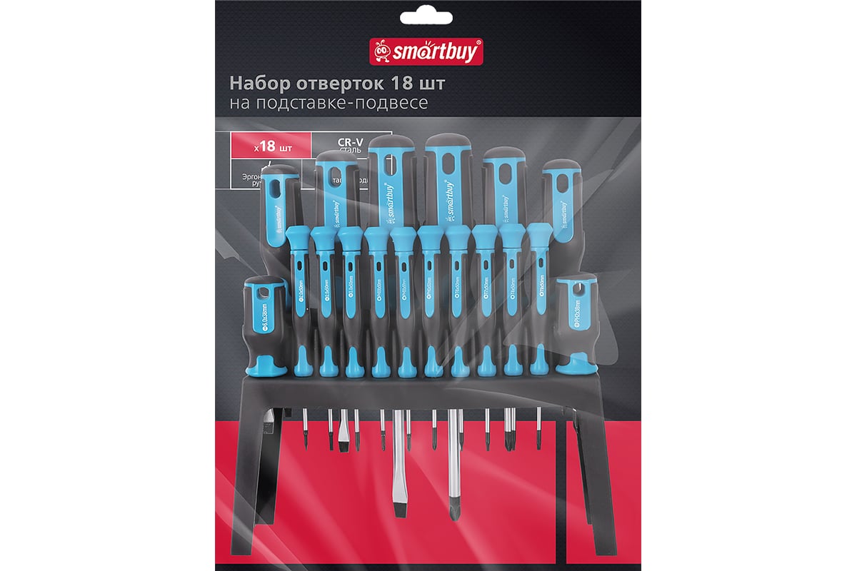 Набор отверток 18 шт, на подставке-подвесе, CR-V сталь, Smartbuy Tools