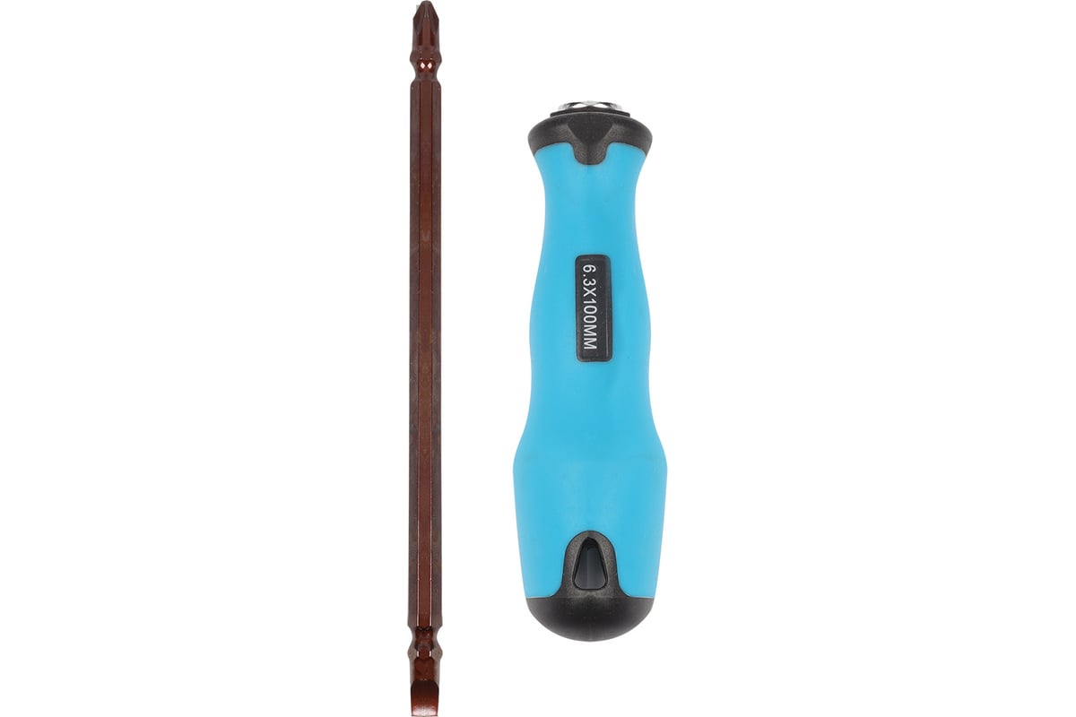 Двусторонняя отвертка с переставными битами пригодится в быту для работы с мебелью, транспортными средствами, электроникой и прочими задачами. Хром-ванадиевая сталь, эргономичная двухкомпонентная рукоятка позволит работать с крепежом, даже залитым краской, и заклинившим. Шлицы соответствуют ГОСТ, хваткая рукоятка обеспечивает больший вращательный момент. Намагниченные наконечники отверток для работы с крепежом даже одной рукой.