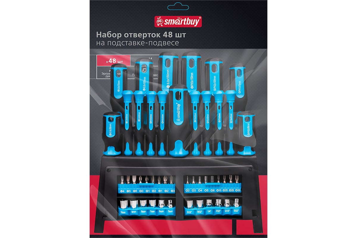 Набор отверток 48 шт, на подставке-подвесе, CR-V сталь, Smartbuy Tools