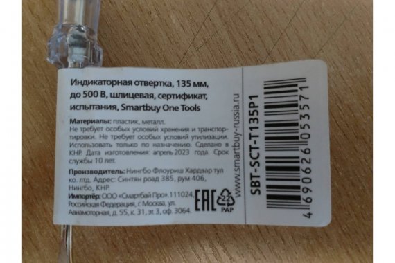 Smartbuy SBT-SCT-T135P1 Индикаторная отвертка, 135 мм, до 500 В