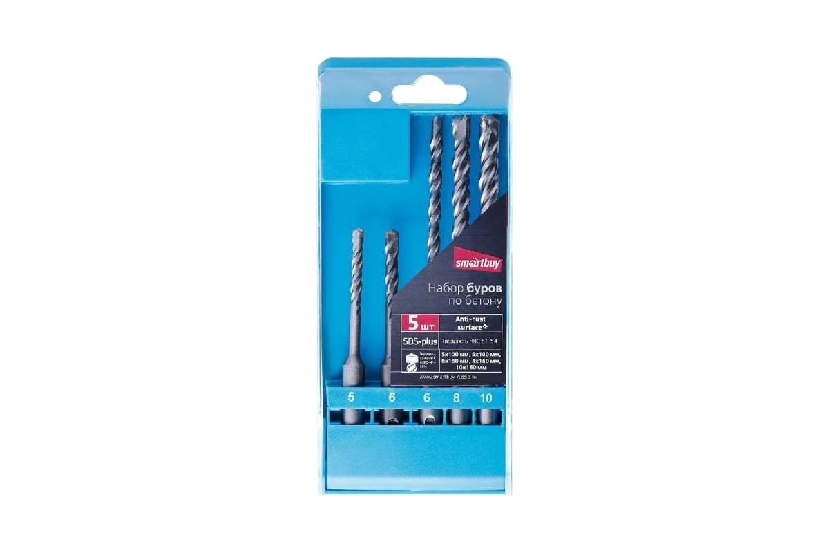 Набор 5 буров по бетону SDS-plus,с твердоспл.нак.,100мм:D5;D6;160мм:D6;D8;D10 кейс Smartbuy Tools/50