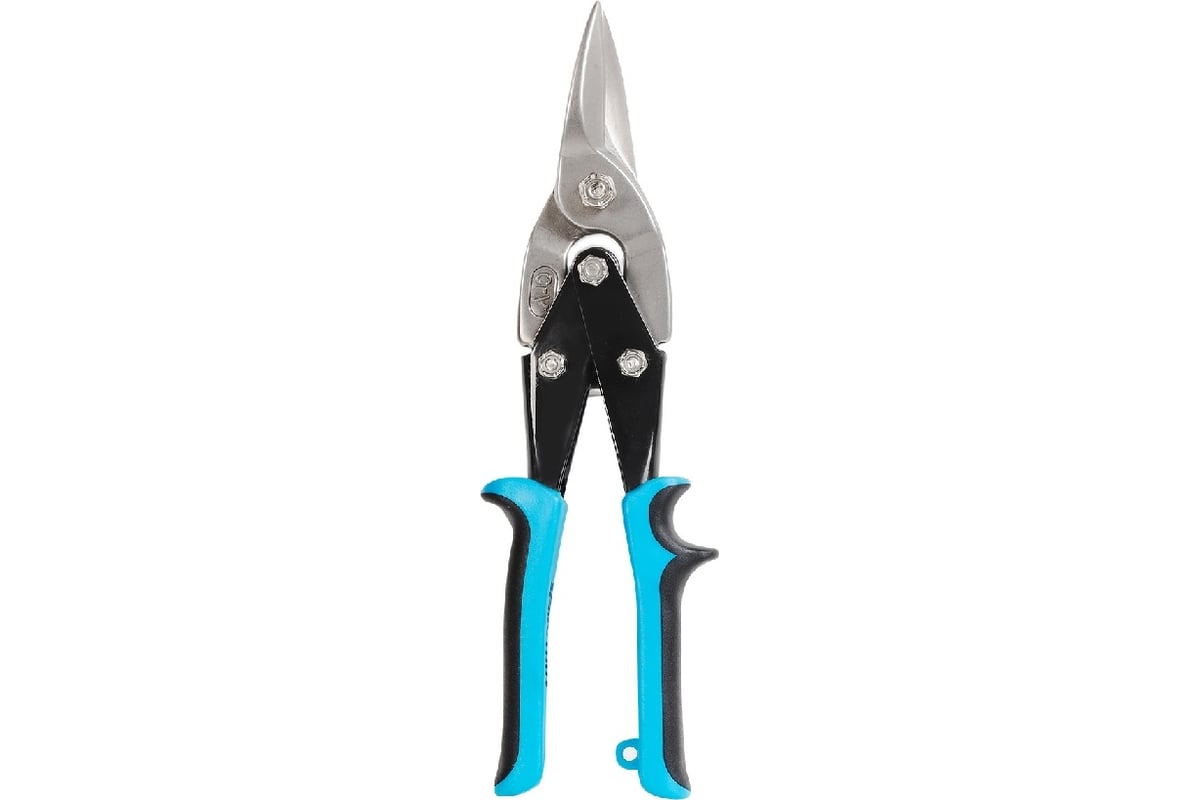 Ножницы предназначены для резки метала. Двухкомпонентная рукоять и рычажный механизм ножей обеспечивают дополнительное усилие при резке. Пружина для размыкания ножей облегчает работу. Для точного направления реза предусмотренны насечки на режущей кромки.