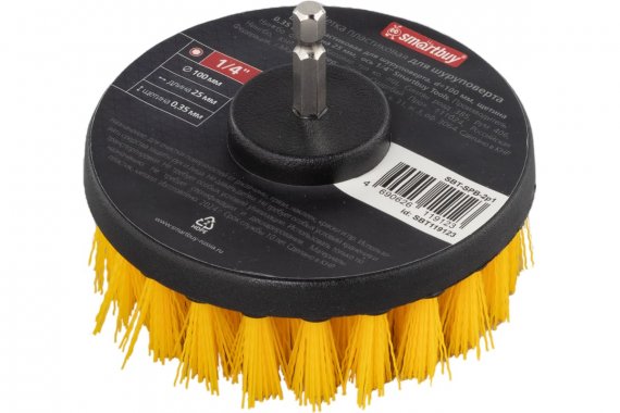 Щетка пластиковая для шуруповерта, d=100 мм, щетина 0,35 мм, длина 25 мм, ось 1/4" Smartbuy Tools