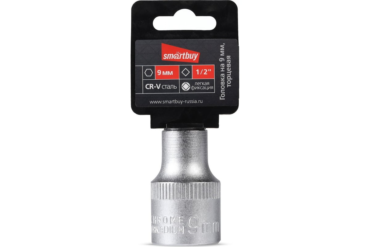 Головка на 9 мм, торцевая, шестигранная, под квадрат 1/2", CR-V, Smartbuy tools