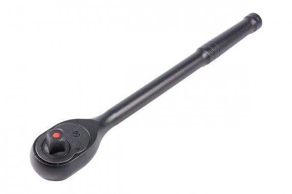 Трещотка для торцевых головок применяется для закручивания и откручивания гаек, болтов и другого крепежа. Произведена из высококачественной хромованадиевой стали, что является гарантией долгого срока службы. Инструмент имеет храповой механизм с 72 зубцами. Трещотка имеет стандартный присоединительный квадрат с фиксирующим шариком. Флажковый механизм трещотки позволяет переключать направление рабочего вращения. Устройство быстрого сброса надежно фиксирует насадку на приводе и легко от нее освобождается одним нажатием на кнопку. Металлическая рукоятка для защиты от повреждения от масла, бензина и прочих химических веществ.
