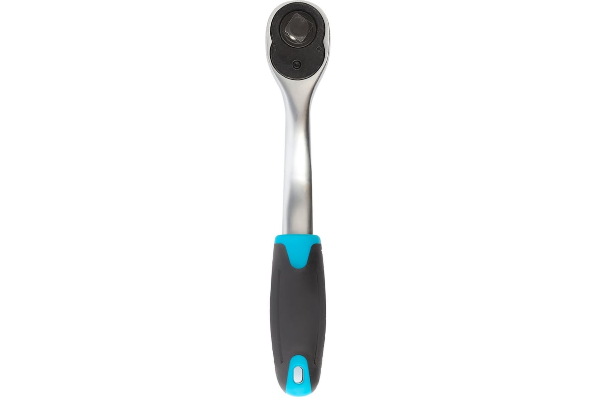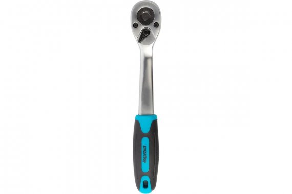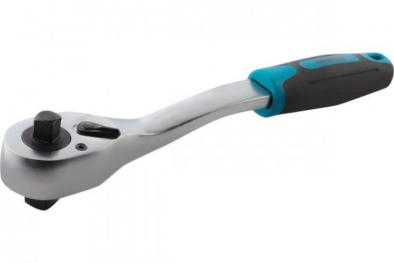 Трещотка для торцевых головок применяется для закручивания и откручивания гаек, болтов и другого крепежа. Произведена из высококачественной хромованадиевой стали, что является гарантией долгого срока службы. Инструмент имеет храповой механизм с 72 зубцами. Безопасность и комфорт во время работы достигается за счет двухкомпонентной рукоятки. Трещотка имеет стандартный присоединительный квадрат с фиксирующим шариком. Флажковый механизм трещотки позволяет переключать направление рабочего вращения. Устройство быстрого сброса надежно фиксирует насадку на приводе и легко от нее освобождается одним нажатием на кнопку.