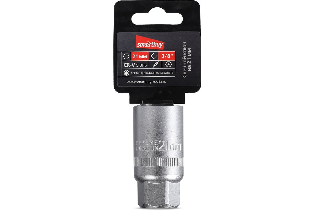 Свечной ключ на 21 мм, под квадрат 3/8", CR-V, Smartbuy tools