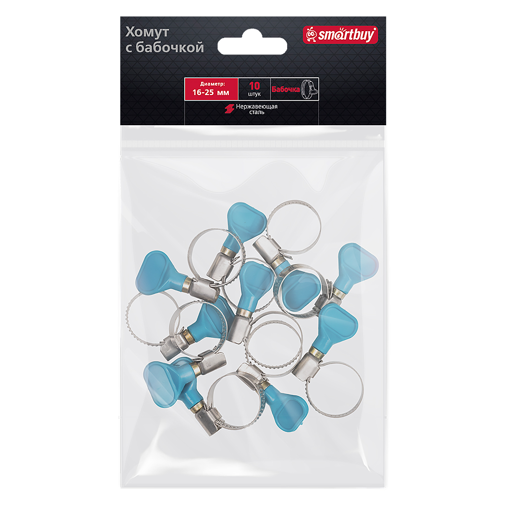 Smartbuy SBT-TCL-1625P2 Хомут 16-25 мм, 10 шт, с бабочкой
