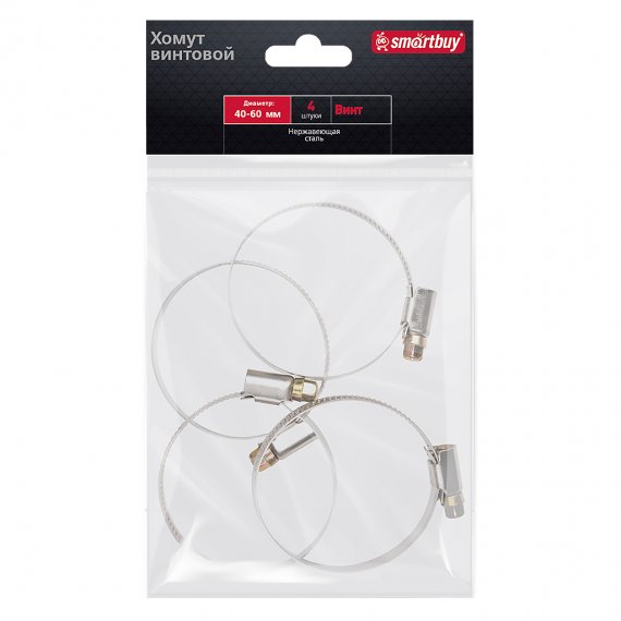 Хомут 40-60 мм, 4 шт, под винт, нерж. сталь, Smartbuy Tools