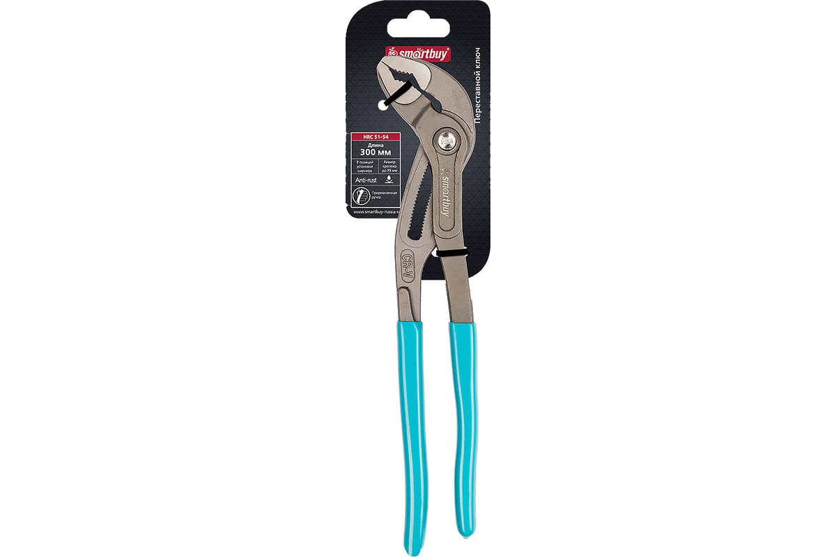 Переставной ключ с кнопкой 300 мм,откр. до 75 мм, тип кобра, удлин. губки, усиленн, Smartbuy tools