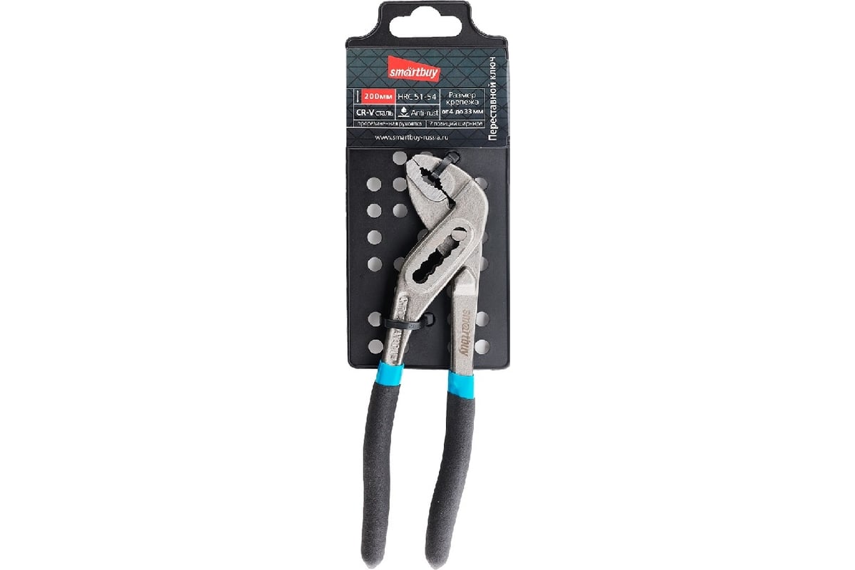 Переставной ключ 200 мм, углеродистая сталь, прорезиненная рукоятка, Smartbuy tools