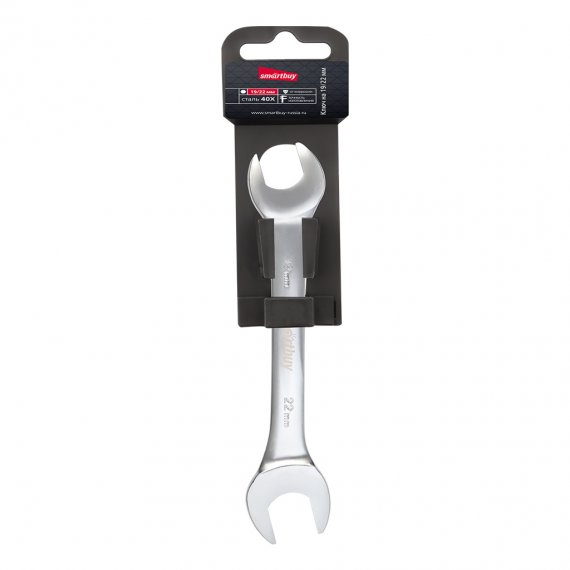 Ключ рожковый на 19 мм, 22 мм, хромированный, 40X, Smartbuy tools/100