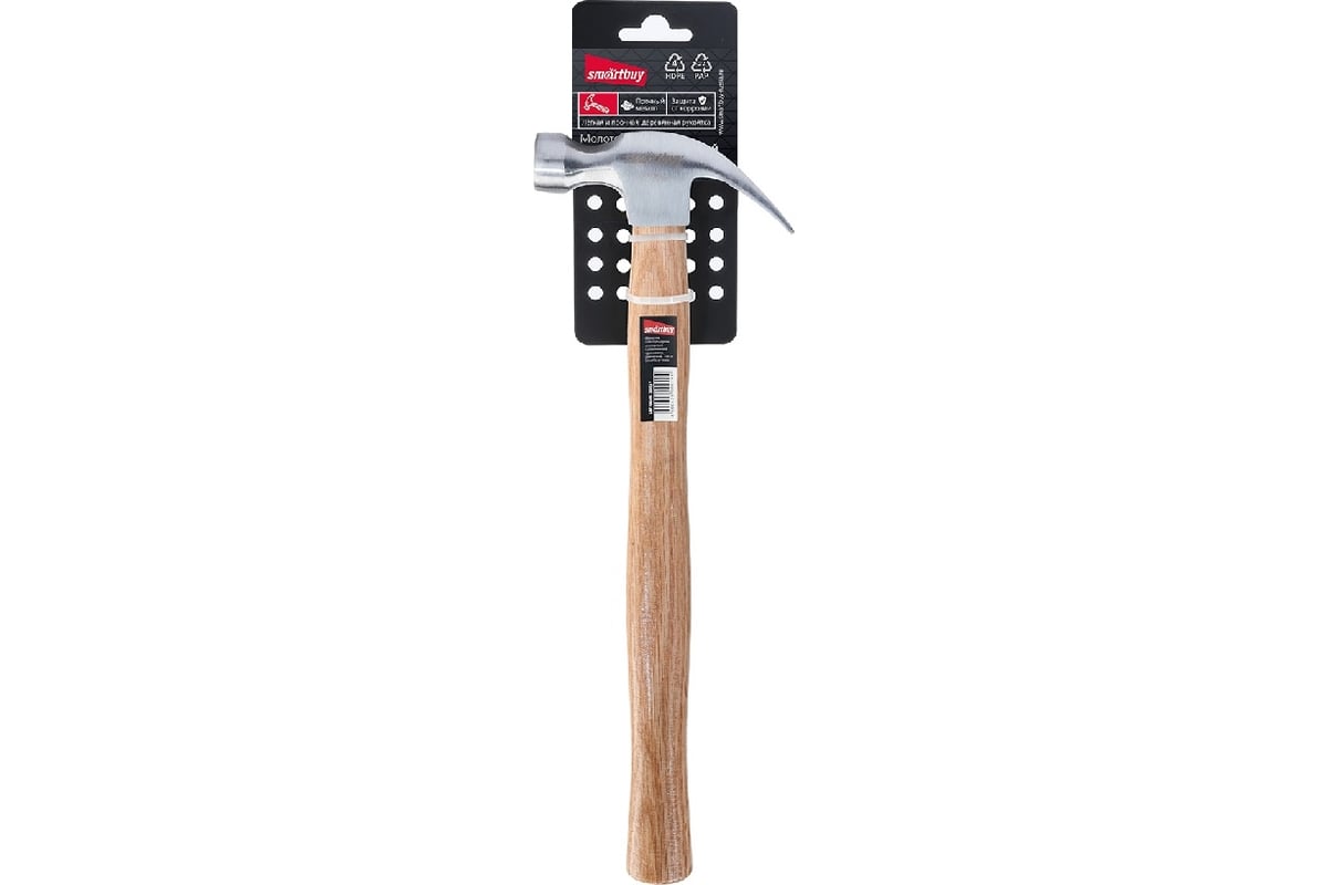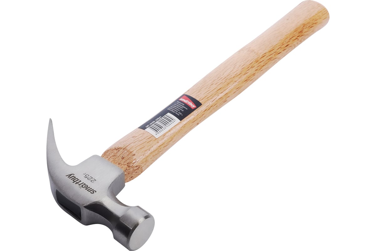Молоток с гвоздодером столярный с деревянной проклеен. рукояткой, 200 г, Smartbuy tools