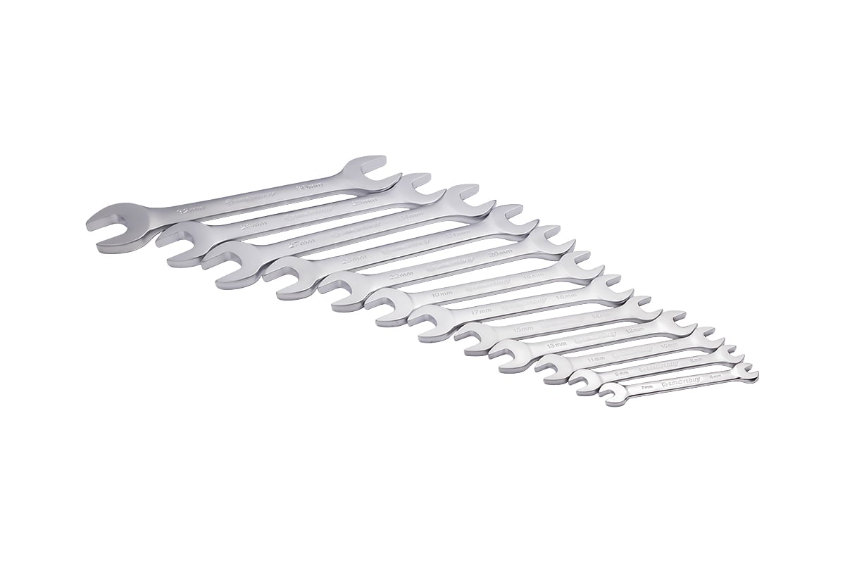 Комплектация: 12 ключей с размерами от 6 до 32 мм, что позволяет работать с крепежом различных диаметров.