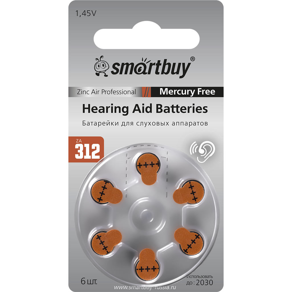 Батарейка для слуховых аппаратов Smartbuy A312-6B (60/3000) (SBZA-A312-6B)