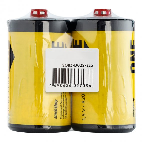 Батарейка солевая Smartbuy ONE R20/2S (24/288) (SOBZ-D02S-Eco)